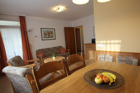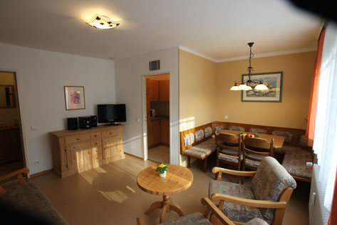 Wohnzimmer (Schlafcouch zum ausziehen, gemütliche Sitzecke, Kinderstuhl auf Wunsch verfügbar, TV-/SAT-Anschluss sowie DVD-Player)